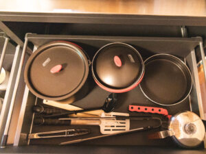 ・クッカー、包丁、まな板、トング、お玉、ターナー、パーコレーター