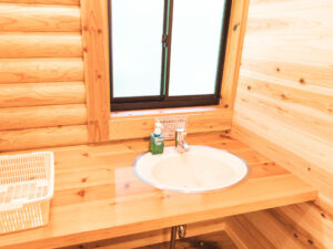 ※キャビンに車は横づけできません。管理棟そばに各棟1台分のパーキングのご用意がございます。チェックイン時に、コールマン製ワゴンを貸し出します。そちらに荷物を載せて各お部屋まで各自でお運びください。